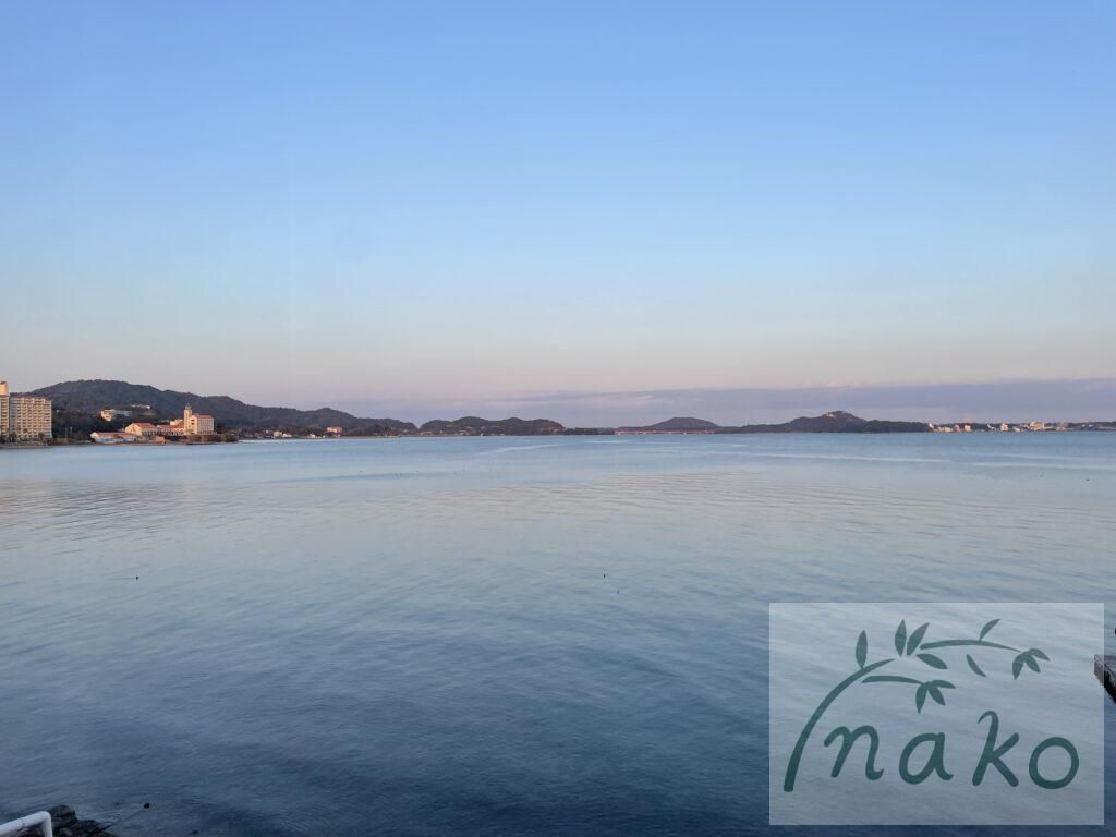 今回泊まったのはシーサイドスタイル…浜名湖を目の前にした本館のお部屋。部屋からは夕方・夜・朝と、時間に合わせて変わる浜名湖を見る事が出来ました。