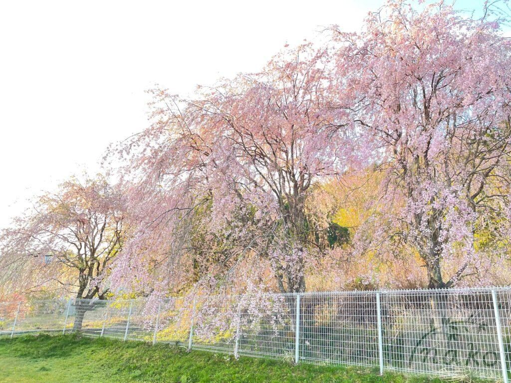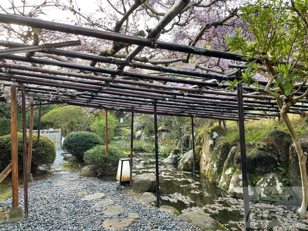 1日目はついて早々、チイコの池ポチャ事件もあった為、翌日にお庭の探索。お宿の庭園を抜けた先にはドッグランもあり、広々と遊ぶこともできました。この時期(4月)、ぎりぎり桜も見る事ができました!